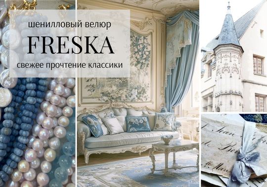 Коллекция шениллового велюра Freska радует той самой палитрой в понятных классических оттенках королевского синего, киноварного красного, шафранового жёлтого, селестианского голубого и, конечно, в ней на особом месте оттенки серебра, бронзы, стали и мрамора. При этом фактура материала имеет неоднородную структуру, она матовая, бархатистая, но при этом рельефная. Часть ворсинок выполнена из глянцевых волокон, что в сочетании сrush-эффектом создает на поверхности сложную игру света и простая матовая фактура дополняется мягкими бликами.