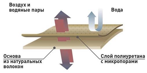 Долгое время таким покрытием был ПВХ (поливинилхлорид). Его легко окрашивать, придавать тиснение, блеск, он достаточно износостоек, что позволяет использовать его на все детали при производстве мебели. Однако имеет устойчивый запах за счет входящих в его состав пластификаторов и абсолютно не пропускает воздух. Все это может привести к отсыреванию наполнителя, да и сидеть на диване с покрытием из ПВХ будет не комфортно. Именно поэтому более 50 лет специалисты-химики искали возможность создать материал сравнимый по характеристикам с натуральной кожей. А началось все в 60-е годы ХХ столетия, когда в компании Дюпон был создан такой полимер, как полиуретан. Прежде всего, он не имеет запаха. Плюс ко всему, его создателям удалось получить материал, пористость которого очень высока. При нанесении на тканевую хлопковую основу получается материал по своим свойствам сравнимый с натуральной кожей, при этом значительно более износостойкий. Кроме того, натуральные кожи с корректированной лицевой поверхностью почти не пропускают воздух, а при окрашивании лицевых кож без корректировки довольно трудно получить светлые и яркие оттенки. И, конечно, отдельная тема – это цена, у натуральной кожи она высокая.